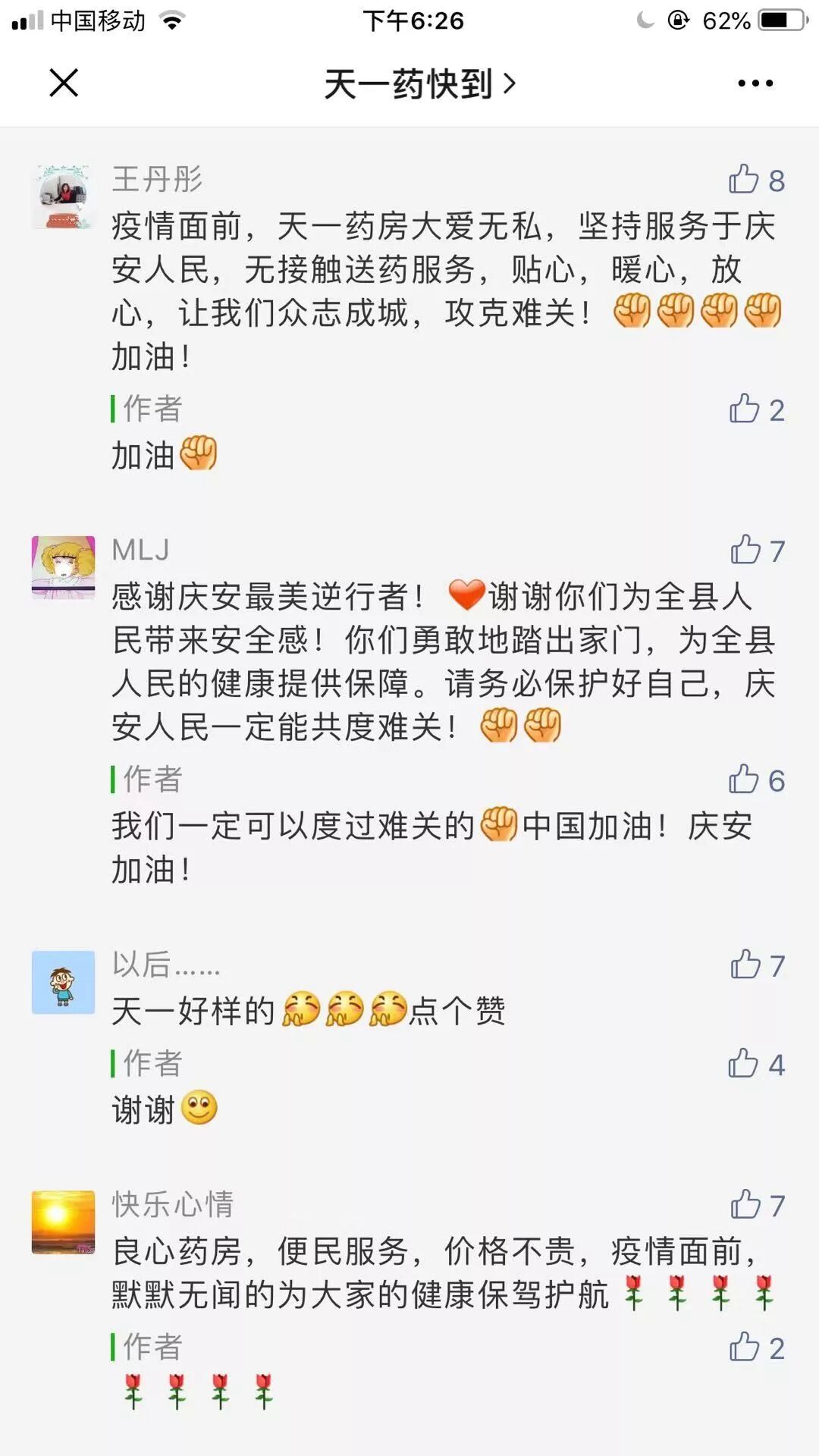 [导读]: 2 月 7 日,位于黑龙江庆安县的天一大药房,通过药快到 APP 上线了 无接触 送药上门服务。庆安县的居民足不出户也能买到防疫用品和药物了!这在疫情防控期间,大大方便了人们的用药需求。 01 全员停休上岗 全力助力抗疫 绝不涨价 这个特殊的春节,除了奋战在......